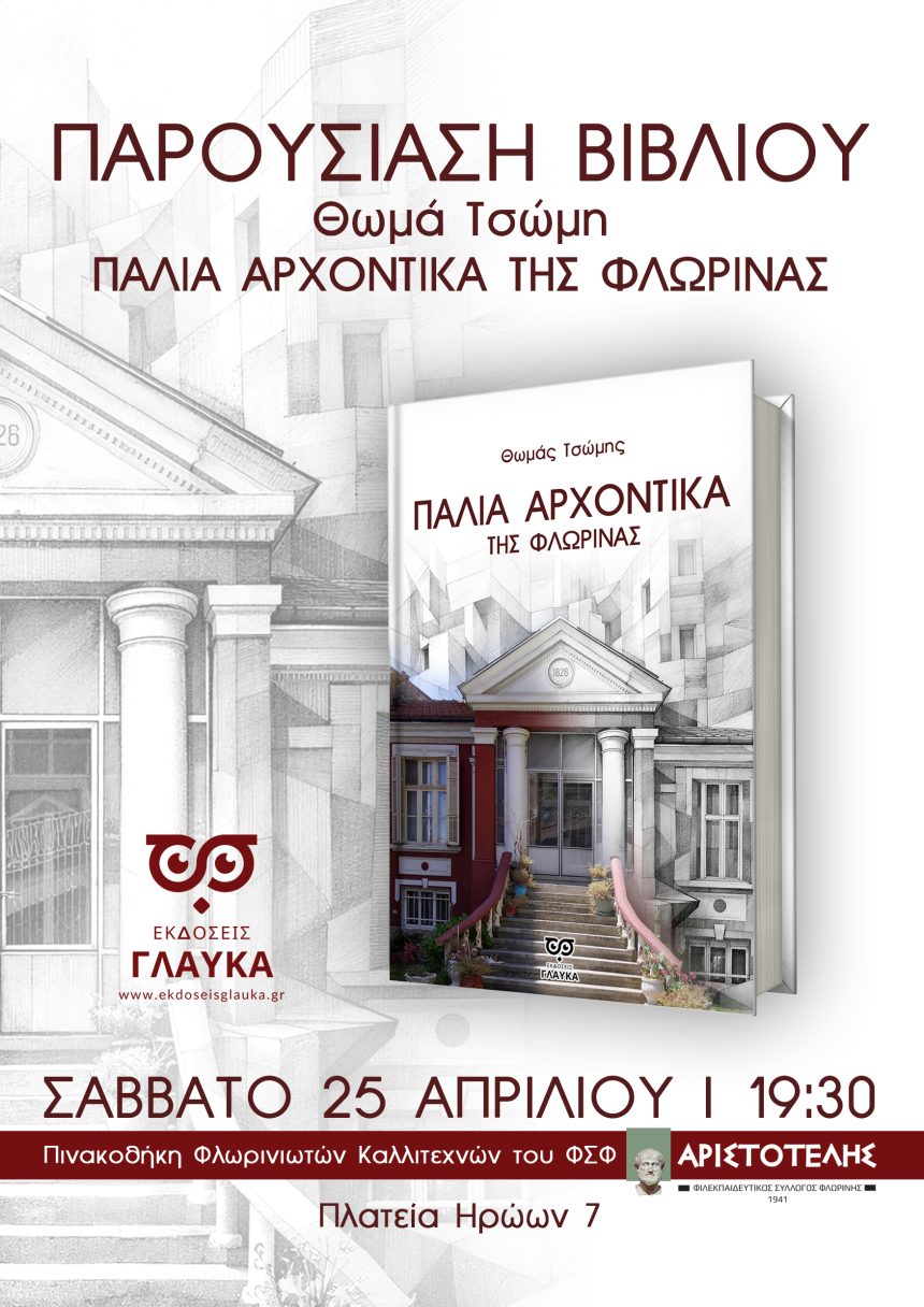Το Σάββατο 25 Απριλίου, στις 19:30, θα γίνει η παρουσίαση του βιβλίου του Θωμά Τσώμη με τίτλο “ΠΑΛΙΑ ΑΡΧΟΝΤΙΚΑ ΤΗΣ ΦΛΩΡΙΝΑΣ”