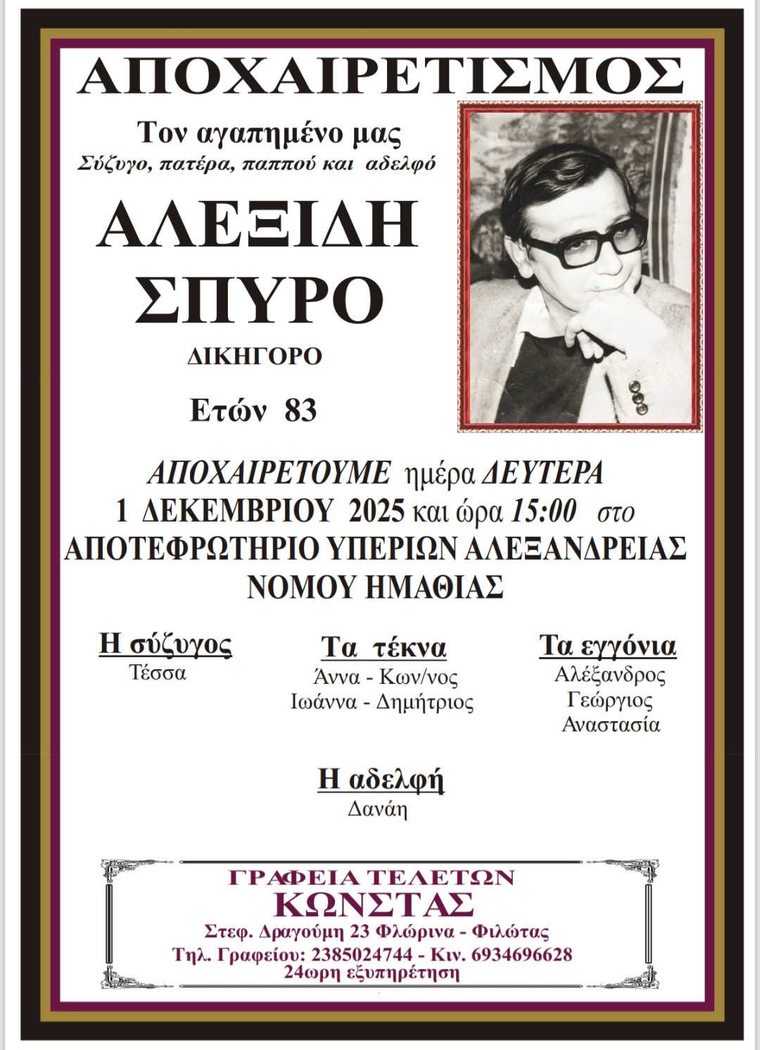 ΚοινωνικάΑποχαιρετισμός στον Σπύρο Αλεξίδη, ετών 83 Κυριακή 30 Νοεμβρίου, 2025 09:41 florinapress.gr SHARE Ίσως να ενδιαφέρει ... Κηδεία της Βασιλικής Μπονάκη Κηδεία του Ιωάννη Ρώμα, ετών 82 Κηδεία της Φωτεινής Οπασίνη Κηδεία του Χρήστου Γαζέα, ετών 22 ΠΡΟΣΚΛΗΣΗ ΕΟΡΤΑΣΜΟΥ ΕΛΕΥΘΕΡΙΑ ΚΕΛΛΗΣ 2022 Share Ακολουθήστε μας8.4kFollowersLikeΤελευταία νέα Αγανακτισμένοι αγρότες : Ως εδώ, η κατάσταση δεν πάει άλλο Κοινωνία Πέμπτη 4 Δεκεμβρίου, 2025 Επισκέψεις Κινητών Μονάδων Υγείας σε απομακρυσμένες Κοινότητες του Δήμου Αμυνταίου Κοινωνία Πέμπτη 4 Δεκεμβρίου, 2025 Ευχαριστήρια επιστολή του Πειραματικού Σχολείου Φλώρινας προς το Κέντρο Περιβαλλοντικής Εκπαίδευσης & Αειφορίας Μελίτης Κοινωνία Πέμπτη 4 Δεκεμβρίου, 2025 Πωλείται Γερμανικός λέβητας ξύλου Κοινωνία Πέμπτη 4 Δεκεμβρίου, 2025