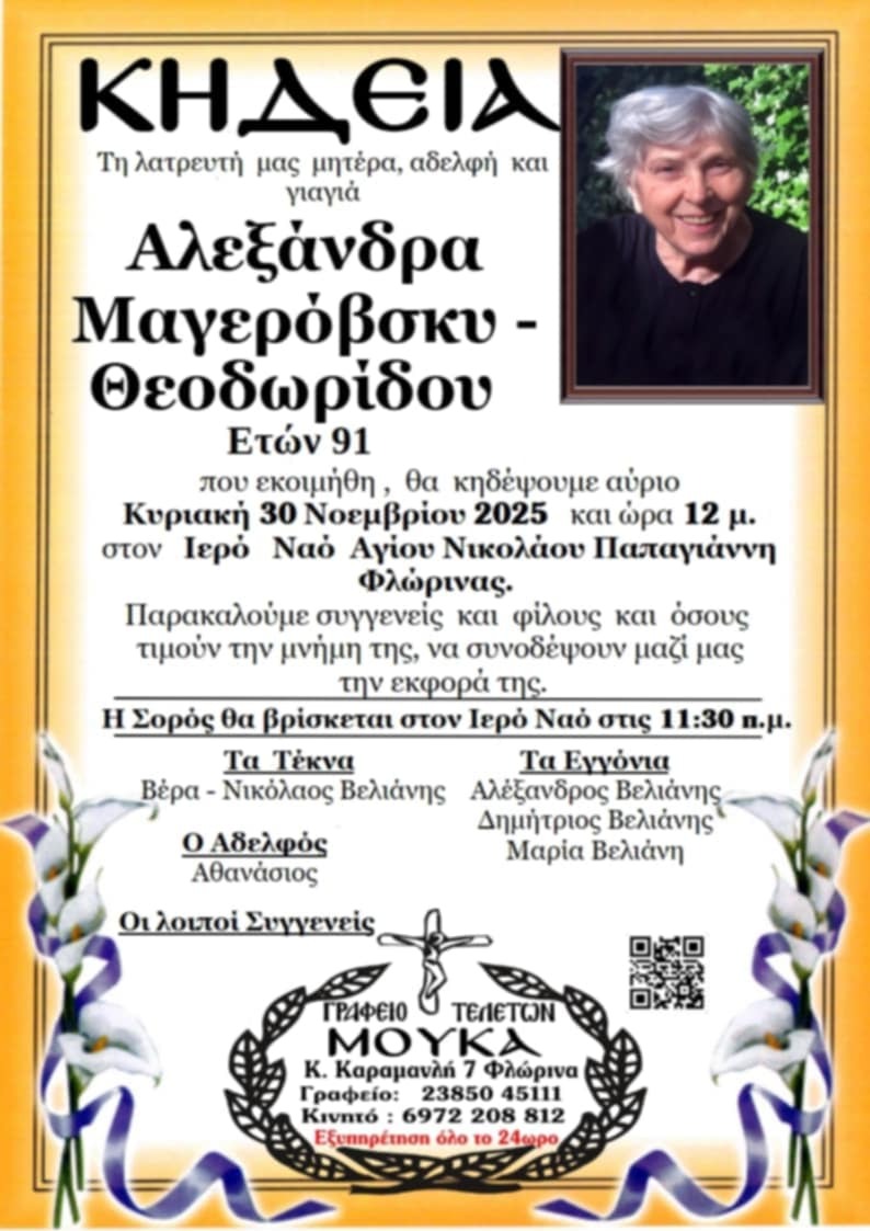 ΚοινωνικάΚηδεία της Αλεξάνδρας Μαγερόβσκυ – Θεοδωρίδου, ετών 91 Σάββατο 29 Νοεμβρίου, 2025 22:28 florinapress.gr SHARE Ίσως να ενδιαφέρει ... Ευχαριστήριο της Διοίκησης του Γενικού Νοσοκομείου Φλώρινας Μνημόσυνα Σαββάτου 5 και Κυριακής 6 Μαρτίου Ευχαριστήριο Συλλόγων Κηδεία της Σουλτάνας Αράπογλου, ετών 77 Κηδεία του Λάζαρου Γαβριηλίδη Share Ακολουθήστε μας8.4kFollowersLikeΤελευταία νέα Αγανακτισμένοι αγρότες : Ως εδώ, η κατάσταση δεν πάει άλλο Κοινωνία Πέμπτη 4 Δεκεμβρίου, 2025 Επισκέψεις Κινητών Μονάδων Υγείας σε απομακρυσμένες Κοινότητες του Δήμου Αμυνταίου Κοινωνία Πέμπτη 4 Δεκεμβρίου, 2025 Ευχαριστήρια επιστολή του Πειραματικού Σχολείου Φλώρινας προς το Κέντρο Περιβαλλοντικής Εκπαίδευσης & Αειφορίας Μελίτης Κοινωνία Πέμπτη 4 Δεκεμβρίου, 2025 Πωλείται Γερμανικός λέβητας ξύλου Κοινωνία Πέμπτη 4 Δεκεμβρίου, 2025