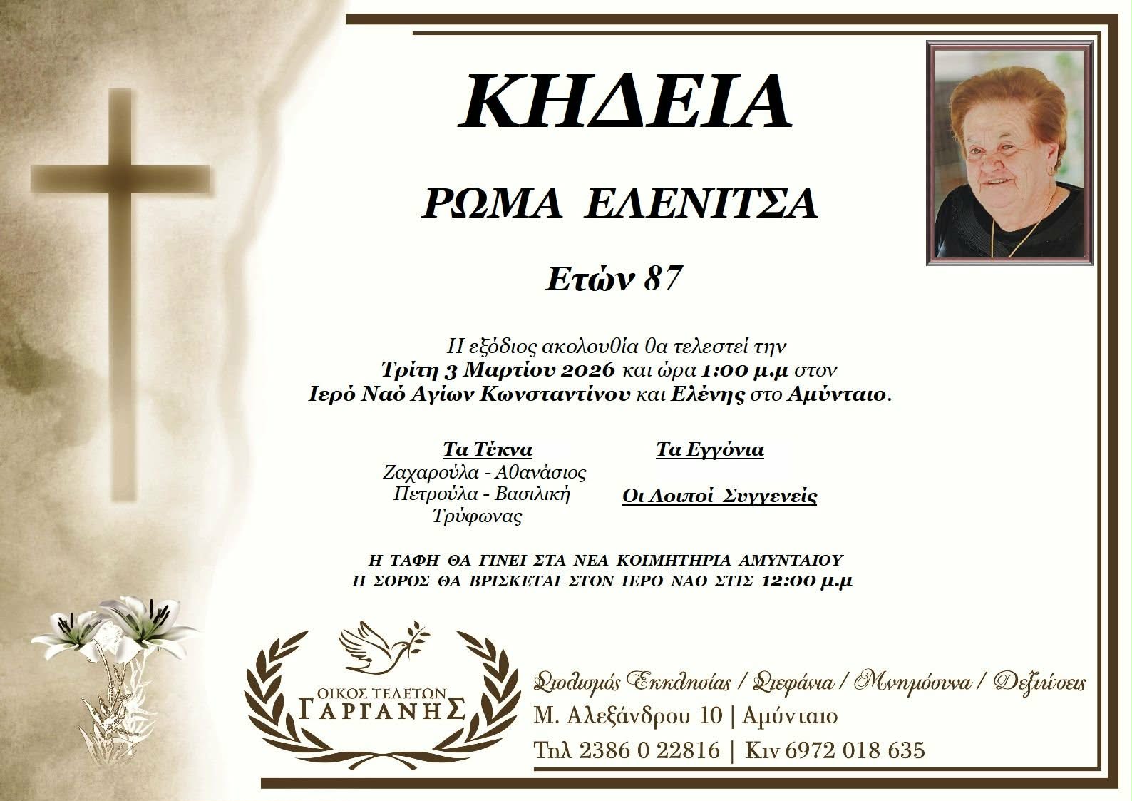 ΚοινωνικάΚηδεία της Ελενίτσας Ρώμα, ετών 87 Δευτέρα 2 Μαρτίου, 2026 19:57 florinapress.gr SHARE Ίσως να ενδιαφέρει ... Κηδεία της Χρυσάνθης Γαβριηλίδου, ετών 89 Κηδεία της της Αικατερίνης Δουδούραγα, ετών 86 Ευχαριστήριο του Λυκείου Ελληνίδων Φλώρινας Κηδεία της Πηνελόπης Σπανού, ετών 90 Κηδεία της Πολυξένης Μαντά Share Ακολουθήστε μας8.4kFollowersLikeΤελευταία νέα Ο εορτασμός της Κυριακής της Ορθοδοξίας από τον Σύνδεσμο Μοναστηριωτών Φλώρινας Εκδηλώσεις Πολιτισμός Δευτέρα 2 Μαρτίου, 2026 Παρουσίαση του βιβλίου Ελευθέριος Βενιζέλος ο «Αρχηγός της Φυλής», ο «Λυτρωτής των Αλυτρώτων» της Σοφίας Ηλιάδου-Τάχου Εκδηλώσεις Πολιτισμός Δευτέρα 2 Μαρτίου, 2026 Διαδικτυακή συνομιλία με τον δημοσιογράφο Πέτρο Μαυρογιαννίδη – Γυμνάσιο Αετού Κοινωνία Δευτέρα 2 Μαρτίου, 2026 Κυβερνητικό κλιμάκιο με επικεφαλής τον Θ. Κοντογεώργη στη Φλώρινα – Περιοδεία και συναντήσεις εργασίας Πολιτική Δευτέρα 2 Μαρτίου, 2026