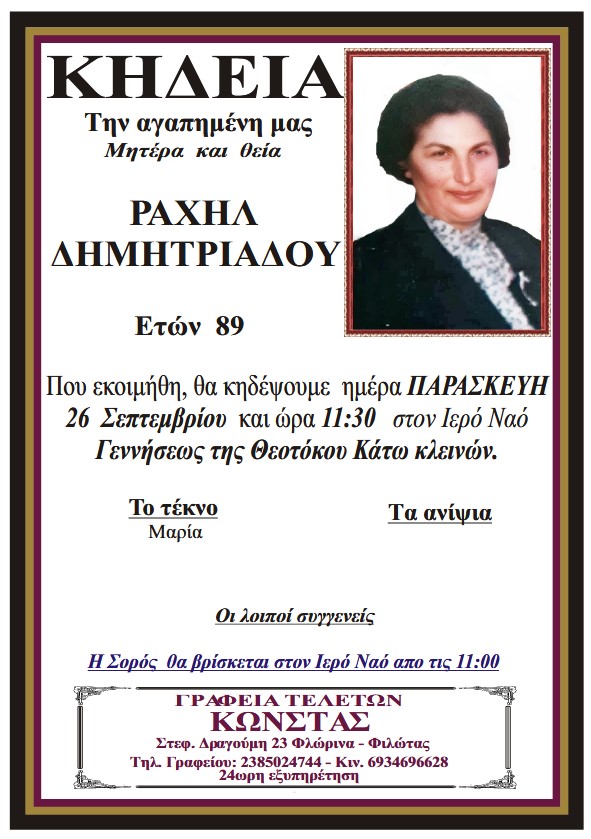 ΚοινωνικάΚηδεία της Ραχήλ Δημητριάδου, ετών 89 Πέμπτη 25 Σεπτεμβρίου, 2025 22:21 florinapress.gr SHARE Ίσως να ενδιαφέρει ... Κηδεία της Ανδρονίκης Μιμιλίδου – Ασίκη Κηδεία της Ελένης Γκρέζου Κηδεία του Σταύρου Γκέσιου Ο «Αριστοτέλης» ευχαριστεί Κηδεία του Γεωργίου Τζιάτζιου Share Ακολουθήστε μας8.4kFollowersLikeΤελευταία νέα Αγανακτισμένοι αγρότες : Ως εδώ, η κατάσταση δεν πάει άλλο Κοινωνία Πέμπτη 4 Δεκεμβρίου, 2025 Επισκέψεις Κινητών Μονάδων Υγείας σε απομακρυσμένες Κοινότητες του Δήμου Αμυνταίου Κοινωνία Πέμπτη 4 Δεκεμβρίου, 2025 Ευχαριστήρια επιστολή του Πειραματικού Σχολείου Φλώρινας προς το Κέντρο Περιβαλλοντικής Εκπαίδευσης & Αειφορίας Μελίτης Κοινωνία Πέμπτη 4 Δεκεμβρίου, 2025 Πωλείται Γερμανικός λέβητας ξύλου Κοινωνία Πέμπτη 4 Δεκεμβρίου, 2025