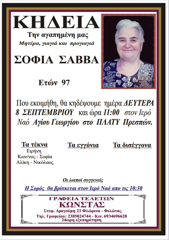 ΚοινωνικάΚηδεία της Σοφίας Σάββα, ετών 97 Κυριακή 7 Σεπτεμβρίου, 2025 20:22 florinapress.gr SHARE Ίσως να ενδιαφέρει ... Κηδεία του Νικολάου Δούμτση Κηδεία της Χριστίνας Μακατσέλου, ετών 91 Κηδεία της Ιωάννας Γαργάνη, ετών 83 Κηδεία του Βασιλείου Μποσδελεκίδη ετών 61 Κηδεία της Κοκώνης Χατζηχρήστου (το γένος Δεληγιαννάκη), ετών 64 Share Ακολουθήστε μας8.4kFollowersLikeΤελευταία νέα Αγανακτισμένοι αγρότες : Ως εδώ, η κατάσταση δεν πάει άλλο Κοινωνία Πέμπτη 4 Δεκεμβρίου, 2025 Επισκέψεις Κινητών Μονάδων Υγείας σε απομακρυσμένες Κοινότητες του Δήμου Αμυνταίου Κοινωνία Πέμπτη 4 Δεκεμβρίου, 2025 Ευχαριστήρια επιστολή του Πειραματικού Σχολείου Φλώρινας προς το Κέντρο Περιβαλλοντικής Εκπαίδευσης & Αειφορίας Μελίτης Κοινωνία Πέμπτη 4 Δεκεμβρίου, 2025 Πωλείται Γερμανικός λέβητας ξύλου Κοινωνία Πέμπτη 4 Δεκεμβρίου, 2025