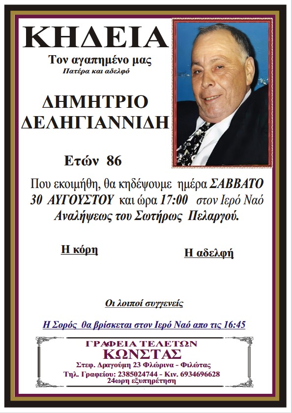 ΚοινωνικάΚηδεία του Δημητρίου Δεληγιαννίδη, ετών 86 Παρασκευή 29 Αυγούστου, 2025 20:37 florinapress.gr SHARE Ίσως να ενδιαφέρει ... Κηδεία της Ολυμπίας Αναστασοπούλου, ετών 95 Κηδεία του Στέφανου Καρακόλη Ευχαριστήριο της Ένωσης Αστυνομικών Υπαλλήλων Φλώρινας Κηδεία της Ευγενίας Τσομπανοπούλου, ετών 92 Κηδεία του Δημητρίου Πούλκου, ετών 78 Share Ακολουθήστε μας8.4kFollowersLikeΤελευταία νέα Αγανακτισμένοι αγρότες : Ως εδώ, η κατάσταση δεν πάει άλλο Κοινωνία Πέμπτη 4 Δεκεμβρίου, 2025 Επισκέψεις Κινητών Μονάδων Υγείας σε απομακρυσμένες Κοινότητες του Δήμου Αμυνταίου Κοινωνία Πέμπτη 4 Δεκεμβρίου, 2025 Ευχαριστήρια επιστολή του Πειραματικού Σχολείου Φλώρινας προς το Κέντρο Περιβαλλοντικής Εκπαίδευσης & Αειφορίας Μελίτης Κοινωνία Πέμπτη 4 Δεκεμβρίου, 2025 Πωλείται Γερμανικός λέβητας ξύλου Κοινωνία Πέμπτη 4 Δεκεμβρίου, 2025