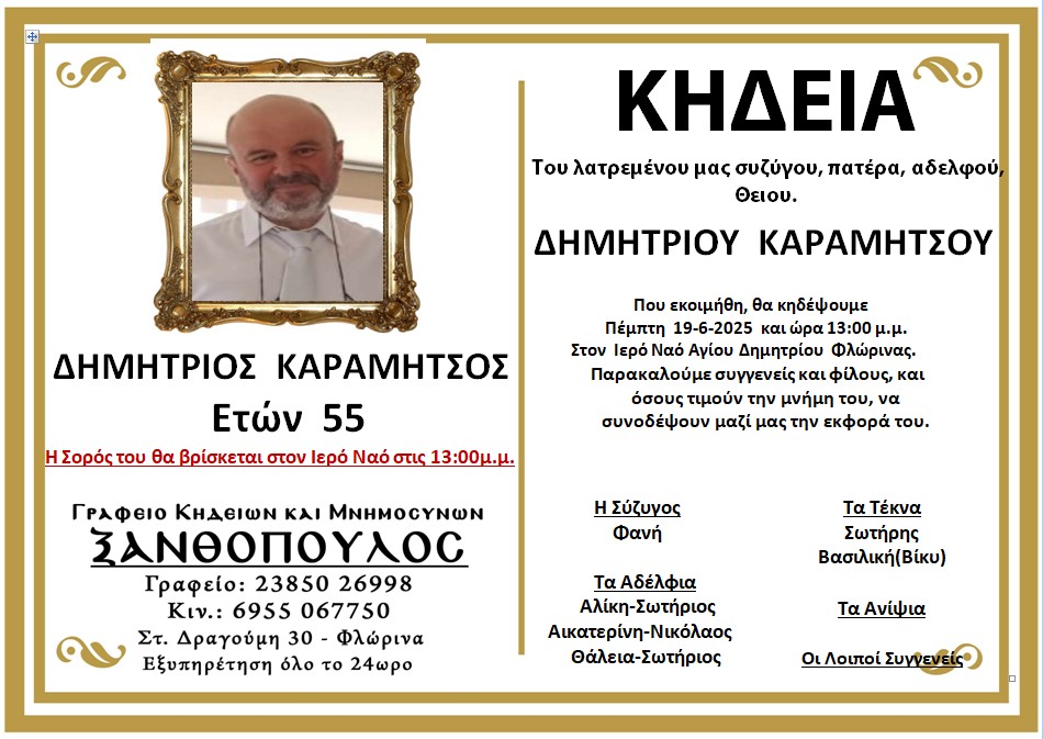 ΚοινωνικάΚηδεία του Δημητρίου Καραμήτσου ετών 55 Τετάρτη 18 Ιουνίου, 2025 11:04 florinapress.gr SHARE Ίσως να ενδιαφέρει ... Έκτακτη γενική συνέλευση του αναγκαστικού δασικού συνεταιρισμού Φλαμπούρου Κηδεία του Θεόδωρου Μητσκόπουλου ετών 91 Στο μεταίχμιο Κηδεία του Μιχαήλ Μπούτλη, ετών 81 Η τοποθέτηση του Δημάρχου Φλώρινας, Βασίλη Γιαννάκη, στην εκδήλωση παρουσίασης του Τοπικού Σχεδίου Ανάπτυξης Share Ακολουθήστε μας8.4kFollowersLikeΤελευταία νέα Αγανακτισμένοι αγρότες : Ως εδώ, η κατάσταση δεν πάει άλλο Κοινωνία Πέμπτη 4 Δεκεμβρίου, 2025 Επισκέψεις Κινητών Μονάδων Υγείας σε απομακρυσμένες Κοινότητες του Δήμου Αμυνταίου Κοινωνία Πέμπτη 4 Δεκεμβρίου, 2025 Ευχαριστήρια επιστολή του Πειραματικού Σχολείου Φλώρινας προς το Κέντρο Περιβαλλοντικής Εκπαίδευσης & Αειφορίας Μελίτης Κοινωνία Πέμπτη 4 Δεκεμβρίου, 2025 Πωλείται Γερμανικός λέβητας ξύλου Κοινωνία Πέμπτη 4 Δεκεμβρίου, 2025