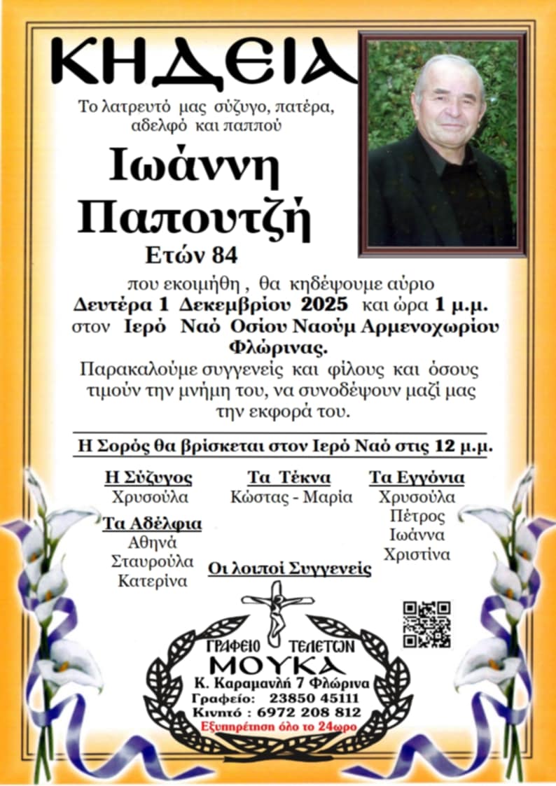 ΚοινωνικάΚηδεία του Ιωάννη Παπουτζή, ετών 84 Κυριακή 30 Νοεμβρίου, 2025 13:41 florinapress.gr SHARE Ίσως να ενδιαφέρει ... Αναλυτικά τα δρομολόγια των Κινητών Αστυνομικών Μονάδων για την επόμενη εβδομάδα (από 13-02-2023 έως 19-02-2023) Κηδεία της Χαρίκλειας Γυμνοπούλου, ετών 94 Κηδεία του Γεωργίου Δελημιχάλη, ετών 68 Κηδεία του Αθανασίου Κούλη, ετών 59 Κηδεία της Μελπομένης Γυφτοπούλου Share Ακολουθήστε μας8.4kFollowersLikeΤελευταία νέα Αγανακτισμένοι αγρότες : Ως εδώ, η κατάσταση δεν πάει άλλο Κοινωνία Πέμπτη 4 Δεκεμβρίου, 2025 Επισκέψεις Κινητών Μονάδων Υγείας σε απομακρυσμένες Κοινότητες του Δήμου Αμυνταίου Κοινωνία Πέμπτη 4 Δεκεμβρίου, 2025 Ευχαριστήρια επιστολή του Πειραματικού Σχολείου Φλώρινας προς το Κέντρο Περιβαλλοντικής Εκπαίδευσης & Αειφορίας Μελίτης Κοινωνία Πέμπτη 4 Δεκεμβρίου, 2025 Πωλείται Γερμανικός λέβητας ξύλου Κοινωνία Πέμπτη 4 Δεκεμβρίου, 2025