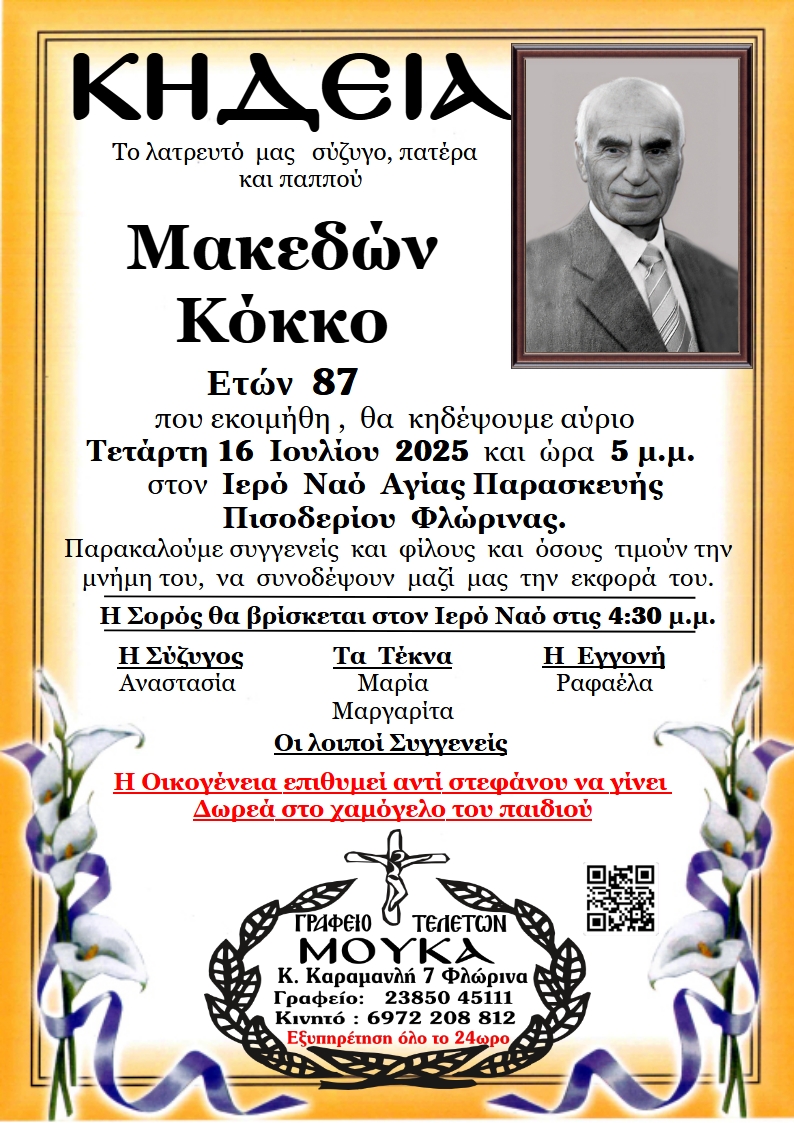 ΚοινωνικάΚηδεία του Μακεδόνα Κόκκου, ετών 87 Τετάρτη 16 Ιουλίου, 2025 11:48 florinapress.gr SHARE Ίσως να ενδιαφέρει ... Κηδεία του Σωκράτη Δουπάτση ετών 89 Κηδεία του Ιωάννη Μαντρατζή Ο «Αριστοτέλης» ευχαριστεί την επιχείρηση «Ήχος Πασχαλίδης» Μνημόσυνα Σαββάτου 11 Ιουνίου Ευχαριστήριο του Περιφερειακού Τμήματος Φλώρινας του Ελληνικού Ερυθρού Σταυρού Share Ακολουθήστε μας8.4kFollowersLikeΤελευταία νέα Αγανακτισμένοι αγρότες : Ως εδώ, η κατάσταση δεν πάει άλλο Κοινωνία Πέμπτη 4 Δεκεμβρίου, 2025 Επισκέψεις Κινητών Μονάδων Υγείας σε απομακρυσμένες Κοινότητες του Δήμου Αμυνταίου Κοινωνία Πέμπτη 4 Δεκεμβρίου, 2025 Ευχαριστήρια επιστολή του Πειραματικού Σχολείου Φλώρινας προς το Κέντρο Περιβαλλοντικής Εκπαίδευσης & Αειφορίας Μελίτης Κοινωνία Πέμπτη 4 Δεκεμβρίου, 2025 Πωλείται Γερμανικός λέβητας ξύλου Κοινωνία Πέμπτη 4 Δεκεμβρίου, 2025