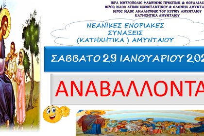 Τα Κατηχητικά Αμυνταίου το Σάββατο 29/01 δεν θα γίνουν