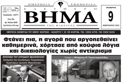 την Τετάρτη 9 Φεβρουαρίου 2022 τα σχολεία του Δήμου Φλώρινας θα ξεκινήσουν…