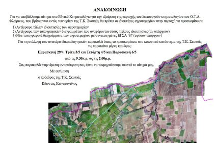 Ανακοίνωση για το κτηματολόγιο της κοινότητας Σκοπιάς