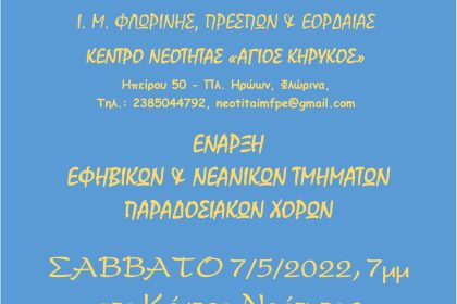 Από το Κέντρο Νεότητας «ΑΓΙΟΣ ΚΗΡΥΚΟΣ» της Μητρόπολής μας ανακοινώνεται η δημιουργία…