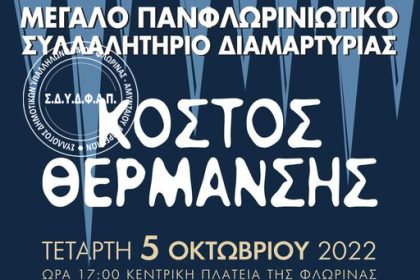 Συμμετοχή στο Πανφλωρινιώτικο Συλλαλητήριο Διαμαρτυρίας με θέμα «ΚΟΣΤΟΣ ΘΕΡΜΑΝΣΗΣ» της 5ης Οκτωβρίου 2022