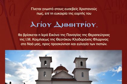 θα βρίσκεται η Ιερά εικόνα της Παναγίας της Θεραπεύτριας της Ι.Μ. Κοιμήσεως…