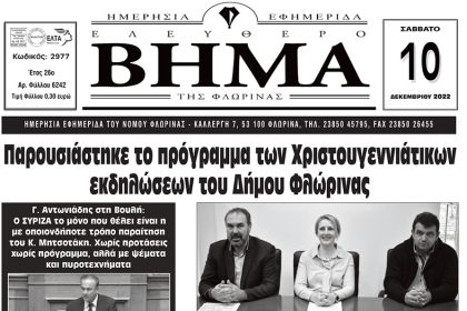 Την Δευτέρα 12 Δεκεμβρίου στην Κολχική Φλώρινας