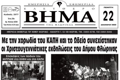 Ο Διοικητής και το προσωπικό της ΔΙ.Π.Υ.Ν. Φλώρινας εύχονται ολόψυχα Καλά Χριστούγεννα