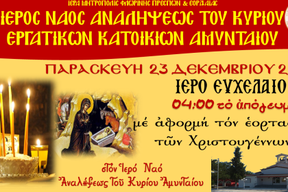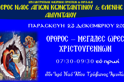 Μεγάλες και Βασιλικές Ώρες των Χριστουγέννων στον Ι.Ν. Αγ. Τρύφωνος Αμυνταίου