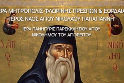 Πανηγυρίζει το παρεκκλήσι του Αγίου Νικοδήμου του Αγιορείτου στην ενορία Παπαγιάννη Φλώρινας