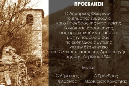 Εκδηλώσεις μνήμης για την 82η επέτειο του Ολοκαυτώματος της Μαρτυρικής Κοινότητας Δροσοπηγής