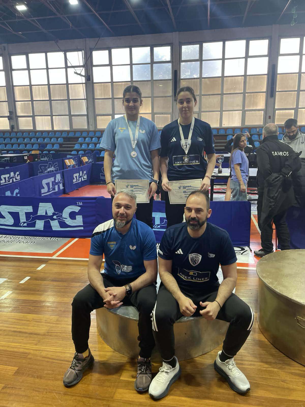 Στο ομαδικό Νεανίδων τα κορίτσια μας αρχικά στον όμιλο ηττήθηκαν από τον ΔΑΟ Ταύρου 3-1 και επιβλήθηκαν του Α.Σ. Πρόοδος Βουτζάς Ραφήνας με 3-1. Στη συνέχεια στον ημιτελικό ηττήθηκαν από την ΧΑΝΘ με 3-1. Έτσι, κατέκτησαν την 3η θέση και το χάλκινο μετάλλιο. Σύνθεση: Γεωργία Σπανού, Ειρήνη Χρυσοστομίδου, Νεστορία Χρυσοστομίδου.