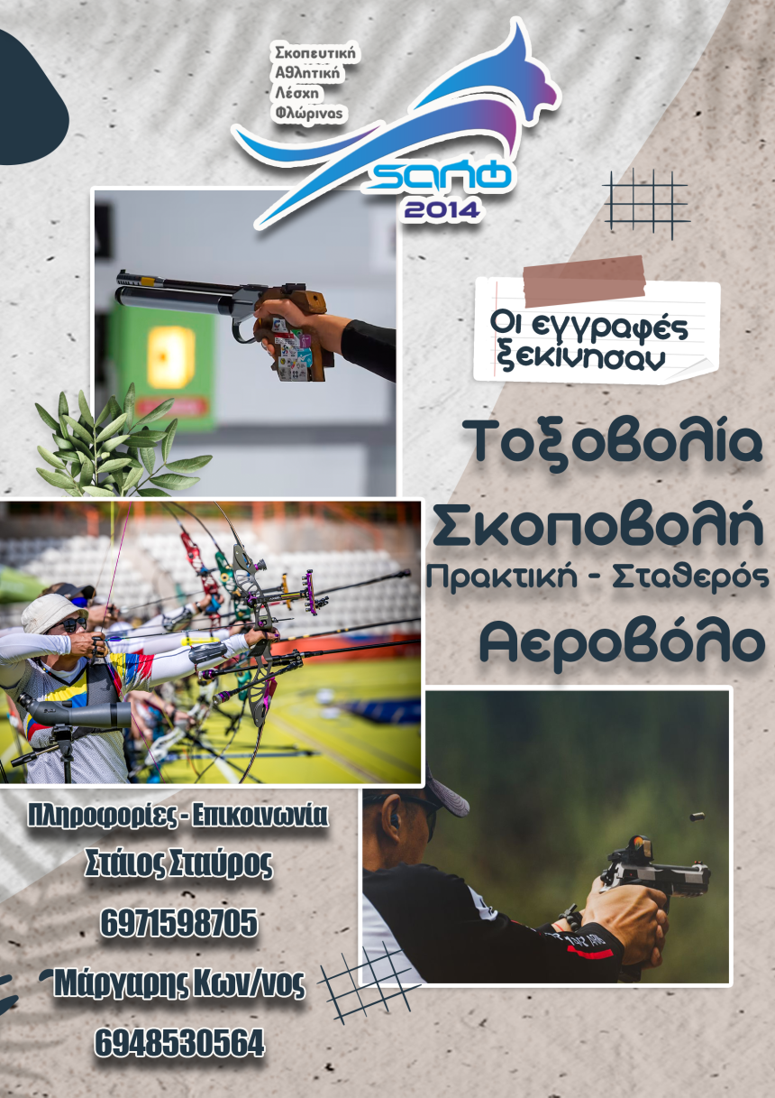 Η Σκοπευτική Αθλητική Λέσχη Φλώρινας σας ενημερώνει για την έναρξη των εγγραφών και προπονήσεων της νέας αγωνιστικής χρονιάς.