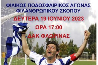 Τη Δευτέρα, 19 Ιουνίου, στις 17:00, στο ΔΑΚ Φλώρινας, θα διεξαχθεί φιλικός…