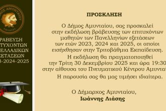 Ο Δήμος Αμυνταίου, σας προσκαλεί στην εκδήλωση βράβευσης των επιτυχόντων μαθητών των…