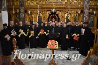 Η χορωδία του Συλλόγου Ιεροψαλτών Ιεράς Μητροπόλεως Φλωρίνης «Άγιος Ιωάννης ο Δαμασκηνός»