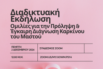 Τμήμα Ψυχολογίας | Διαδικτυακή Εκδήλωση για την Πρόληψη & Έγκαιρη Διάγνωση Καρκίνου του Μαστού