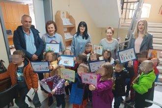 Μαθητές και μαθήτριες του 5ου Νηπιαγωγείου Φλώρινας, μαζί με εκπαιδευτικούς και γονείς,…