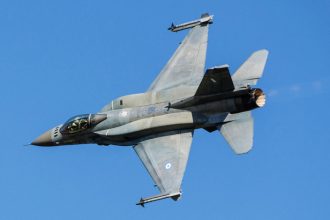 Διέλευση πολεμικού αεροσκάφους τύπου F-16 στο πλαίσιο του εορτασμού του Προστάτη της Πολεμικής Αεροπορίας