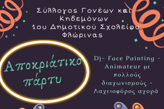 Αποκριάτικο πάρτυ του Συλλόγου Γονέων και Κηδεμόνων του 1ου Δημοτικού Σχολείου Φλώρινας