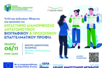 Εργαστήριο Διαμόρφωσης Ανταγωνιστικού Βιογραφικού & Προσωπικού Επαγγελματικού Προφίλ την Πέμπτη 6 Νοεμβρίου στο Κέντρο Δεξιοτήτων Φλώρινας