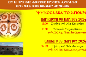 Την 09 Μαρτίου 2024, ημέρα Σάββατο και ώρα 11:00, θα τελεστεί στο…