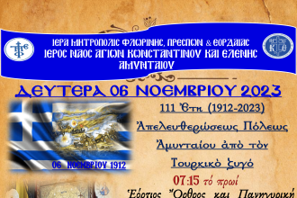 Πρόγραμμα εορτασμού της 111ης επετείου των ελευθερίων του Δήμου Φλώρινας στις 8 Νοεμβρίου 1912
