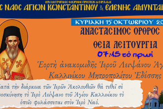 Εορτή Ανακομιδής Ιερού Λειψάνου Αγίου Καλλινίκου Μητροπολίτου Εδέσσης στον Ι.Ν. Αγ. Κων/νου και Ελένης την Κυριακή 15-10