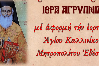 Ιερά Αγρυπνία εορτής Αγ. Καλλινίκου Μητροπολίτου Εδέσσης στον Ι.Ν. Αγ. Γεωργίου Ξινού…