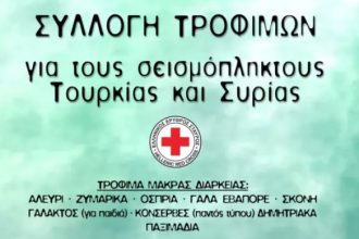 Έκκληση για συγκέντρωση ειδών πρώτης ανάγκης για τους σεισμόπληκτους στην Τουρκία και τη Συρία