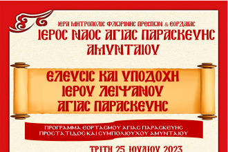 Ιερά Πανήγυρις Ι.Ν. Αγ. Παρασκευής Αμυνταίου -Υποδοχή Ιερού Λειψάνου Αγίας Παρασκευής