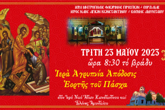Φέρομε σὲ γνώση τῶν εὐσεβῶν Χριστιανῶν ὅτι τὴν Τρίτη 23 Μαΐου στὸν…