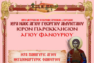 Στίς 27 Αὐγούστου πανηγυρίζει τό Ἱερό Παρεκκλήσιο τοῦ Ἁγίου Μεγαλομάρτυρος Φανουρίου τοῦ…
