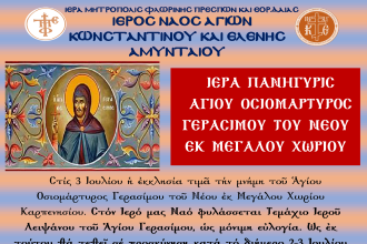 Πανήγυρις Αγ. Οσιομάρτυρος Γερασίμου του Νέου στον Ι.Ν. Αγ. Κων/νου και Ελένης Αμυνταίου