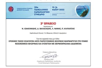 Τιμητική βράβευση ερευνητικής εργασίας της Καρδιολογικής Κλινικής του Γενικού Νοσοκομείου Φλώρινας