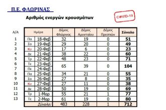712 ενεργά κρούσματα στην Π.Ε. Φλώρινας