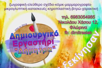 Ξεκινούν οι εγγραφές στο δημιουργικό εργαστήρι “Δήμητρα”