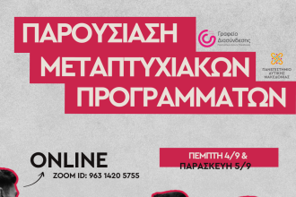 Μια διήμερη διαδικτυακή εκδήλωση παρουσίασης των Μεταπτυχιακών Προγραμμάτων Σπουδών διοργανώνει το Γραφείο…