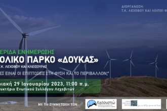 Ημερίδα Ενημέρωσης με θέμα: Αιολικό πάρκο “Δούκας” – “ποιες είναι οι επιπτώσεις στη φύση και το περιβάλλον”