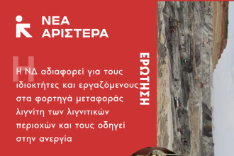 Ερώτηση Βουλευτών της Νέας Αριστεράς με θέμα: «Η ΝΔ αδιαφορεί για τους ιδιοκτήτες και εργαζόμενους στα φορτηγά μεταφοράς λιγνίτη…»