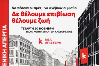 Ανακοίνωση της Νέας Αριστεράς Φλώρινας για τη Γενική Απεργία της 20/11