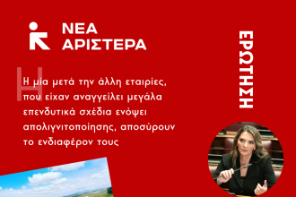 Ερώτηση Βουλευτών Νέας Αριστεράς: Η μία μετά την άλλη εταιρίες, που είχαν αναγγείλει μεγάλα επενδυτικά σχέδια ενόψει απολιγνιτοποίησης, αποσύρουν το ενδιαφέρον τους
