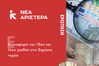 Ερώτηση της Νέας Αριστεράς για την Eπαναφορά του 13ου και 14ου μισθού στο δημόσιο τομέα