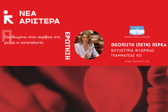 Ερώτηση Π. Πέρκα: «Παγιδευμένοι στην ακρίβεια στο ρεύμα οι καταναλωτές»